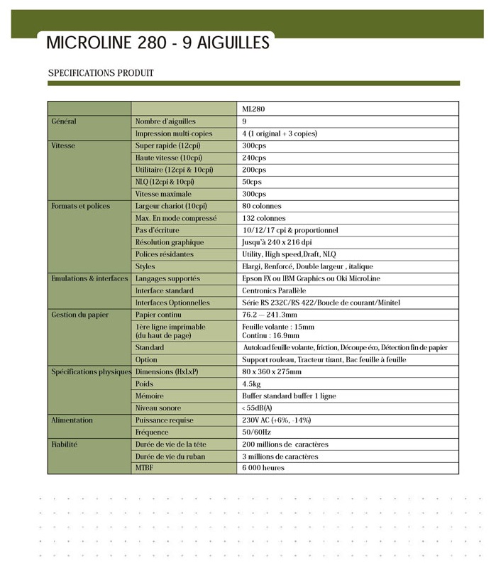 Model£ºMICROLINE 280